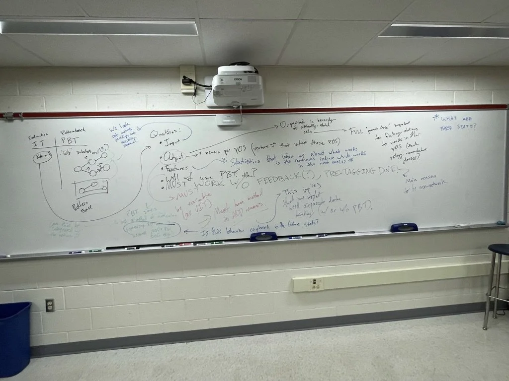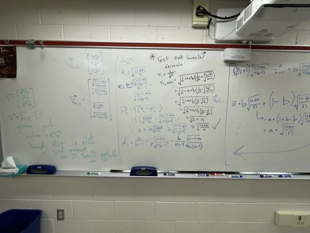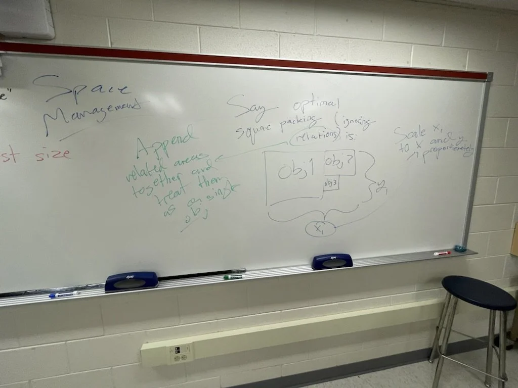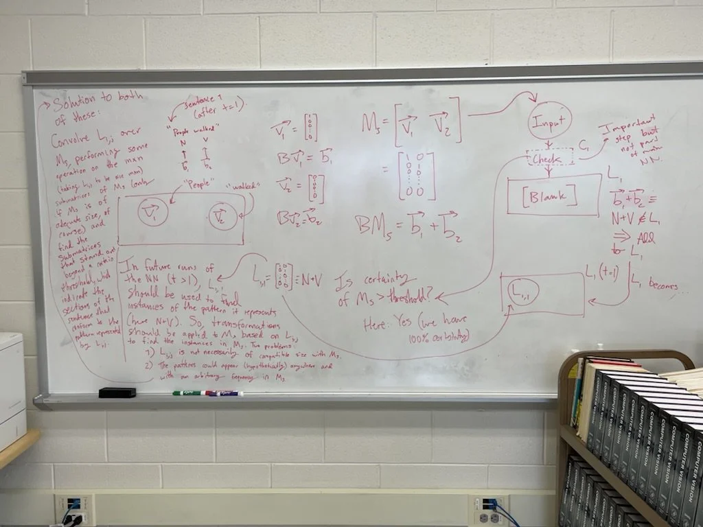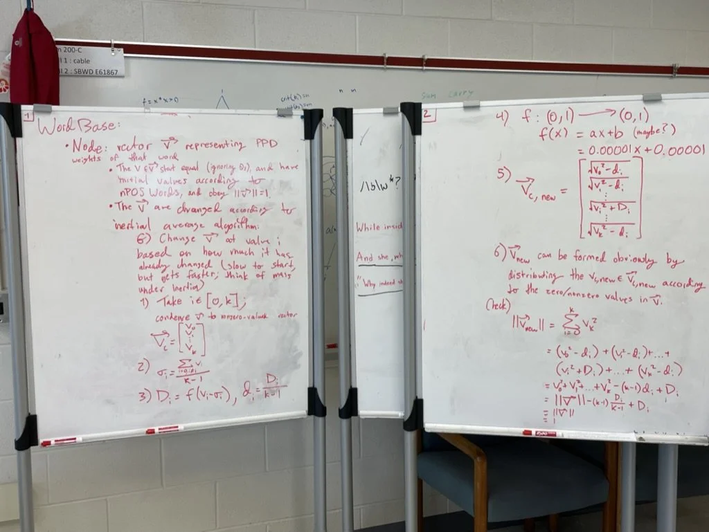 Whiteboard Scribbles We do a lot of theoretical work before beginning the programming. Here are some of the whiteboards we have scribbled on in our thinking.