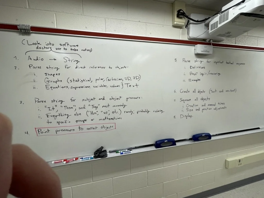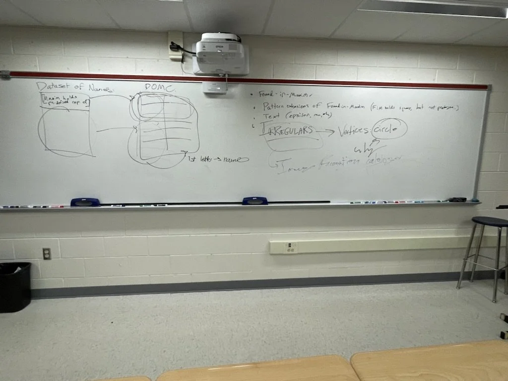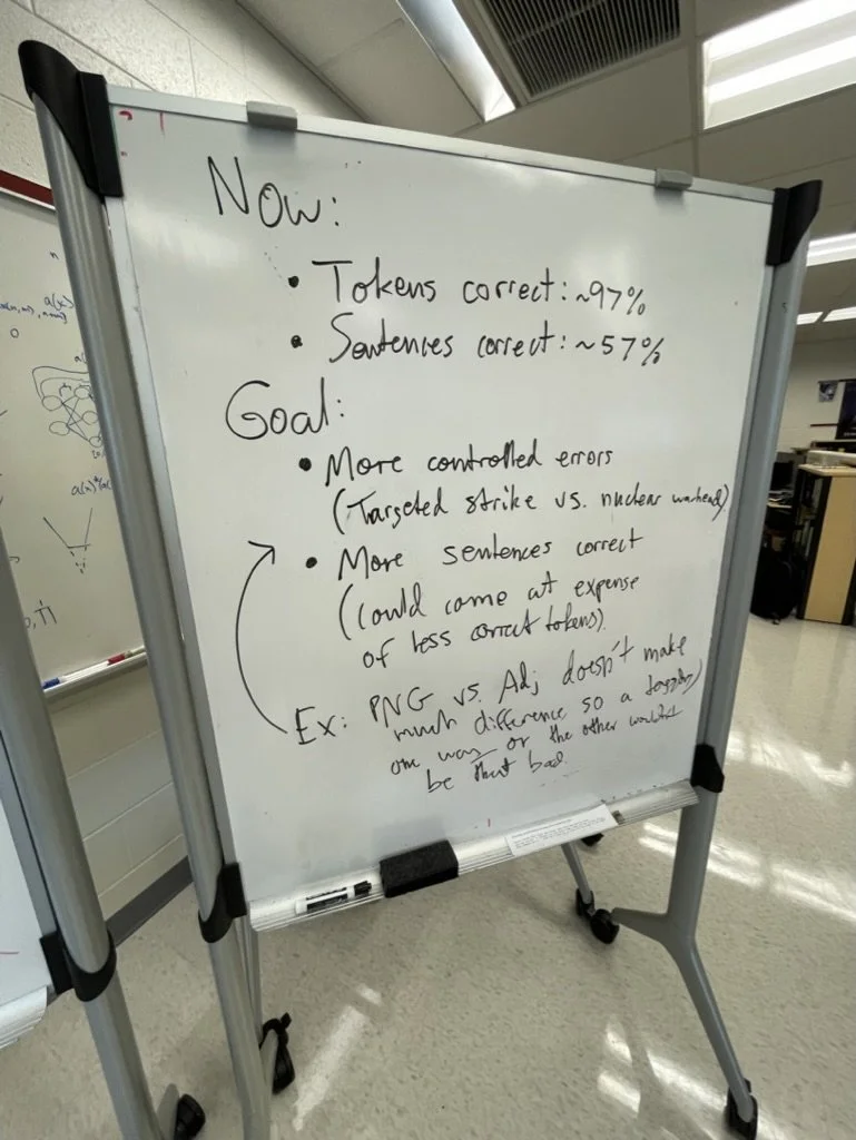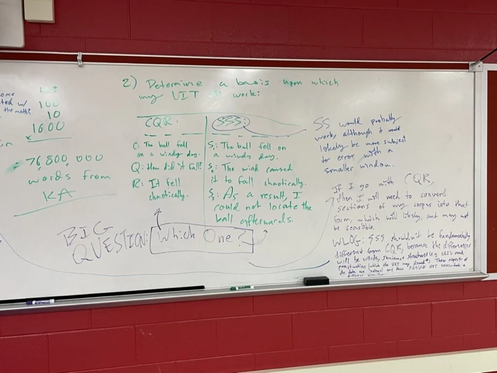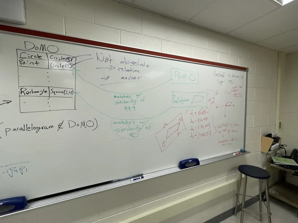 Whiteboard Scribbles We do a lot of theoretical work before beginning the programming. Here are some of the whiteboards we have scribbled on in our thinking.
